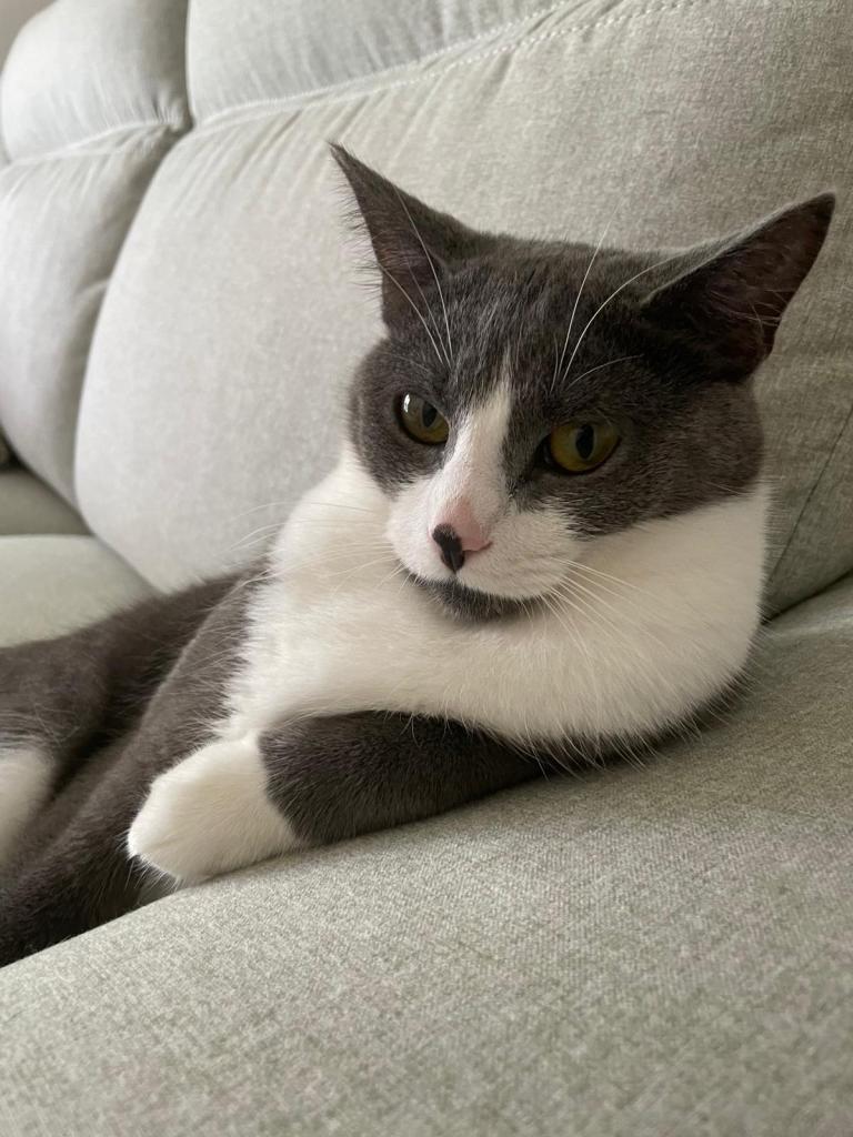 Hi! I’m Blitz! I’m Ashe’s WAYYY cooler brother. I just choose not to be as cute, but when I need to…I’m much better than Ashe! I loveeee walkies especially rolling in the sun! I’m also a very smart boi and I work as a full-time food thief >:)